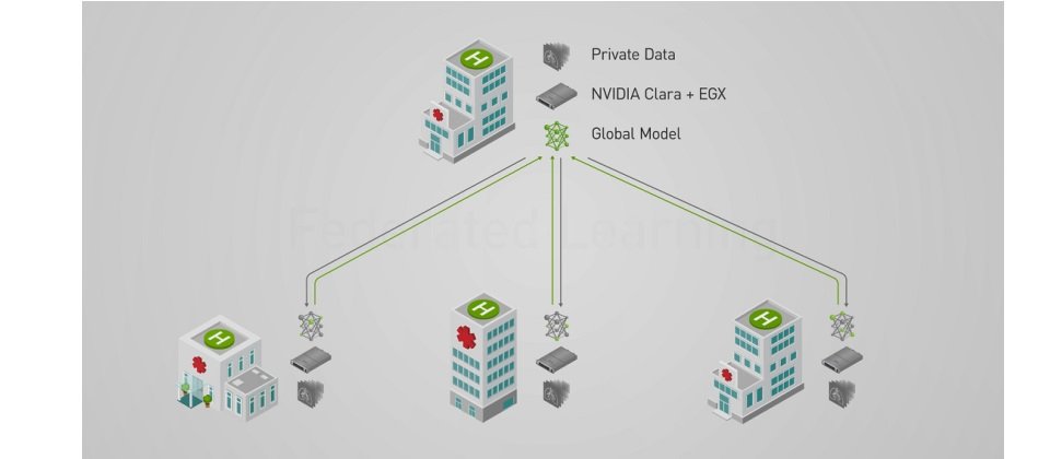Clara Federated Learning (Clara FL) 是一項分散式合作人工智慧模型訓練參考應用程式,用於保障病患隱私,這些在全球系統製造商所生產之 NVIDIA NGC-Ready for edge 伺服器上運行的分散式用戶端系統,可以在本地執行深度學習訓練,也能攜手合作來訓練更精準的全域人工智慧模型。