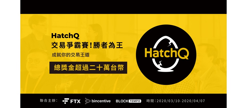 HatchQ 為亞洲首創的加密貨幣量化交易競賽,在2018年的開幕儀式中吸引了360多名嘉賓到場,與60多位量化、大數據、金融科技的專家報名參賽。除了標榜能在競賽中由專業的對沖基金機構、量化交易專家審核外,高額的獎金重賞,也為台灣尚為小眾的加密貨幣量化交易者們注入資源和能量。