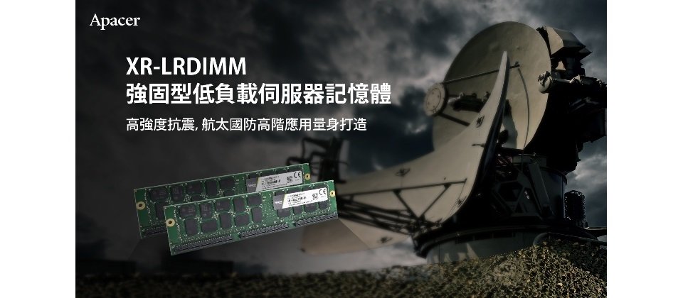 針對國防專案設計,全球工控記憶體領導品牌Apacer宇瞻科技(8271)成功研發全球首款軍用抗震伺服器記憶體──XR-LRDIMM強固型低負載伺服器記憶體,大幅強化伺服器記憶體於抗震與抗衝擊的可靠度,展現高端客製化實力與深厚產業經驗。宇瞻完整佈局強固型記憶體產品線,領先業界發表XR-LRDIMM、XR-DIMM與Rugged SODIMM等一系列抗震產品,為重視穩定性與可靠度的航太國防與工控市場提供多元選擇,持續擴大強固型記憶體市佔率。