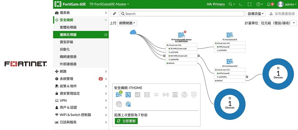 在市面上眾多 SD-WAN 供應商中,Fortinet 是少數將 SD-WAN 與次世代方案整合的業者。Fortinet 的FortiGate 是在次世代防火牆中內建SD-WAN 的解決方案,具備應用程式識別能力,可提供自動 WAN 路徑控管,並支援多寬頻連線等特性。此種獨步全球的設計,能取代傳統分散於公司內部的 WAN 路由器、 WAN 優化和安全裝置,進而達到提高網路安全,與簡化分公司廣域網路連線的部署及管理等工作。