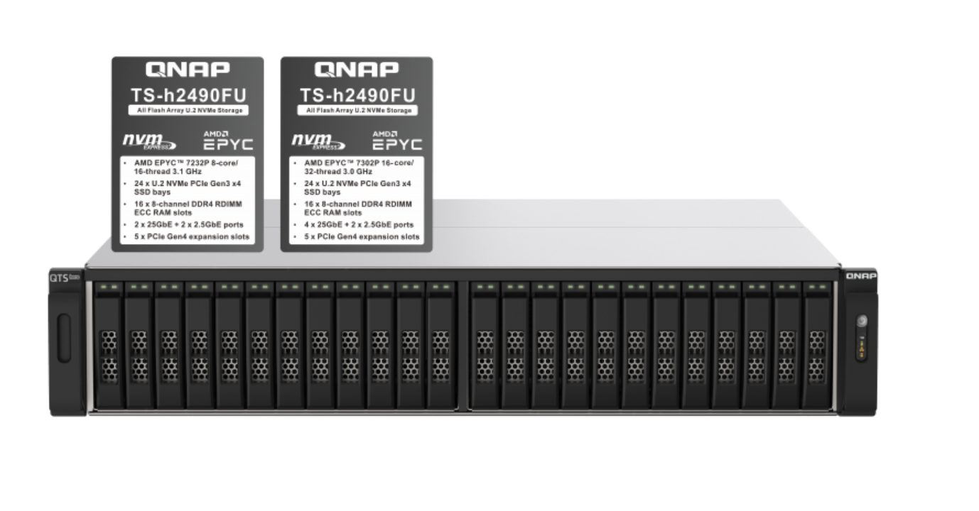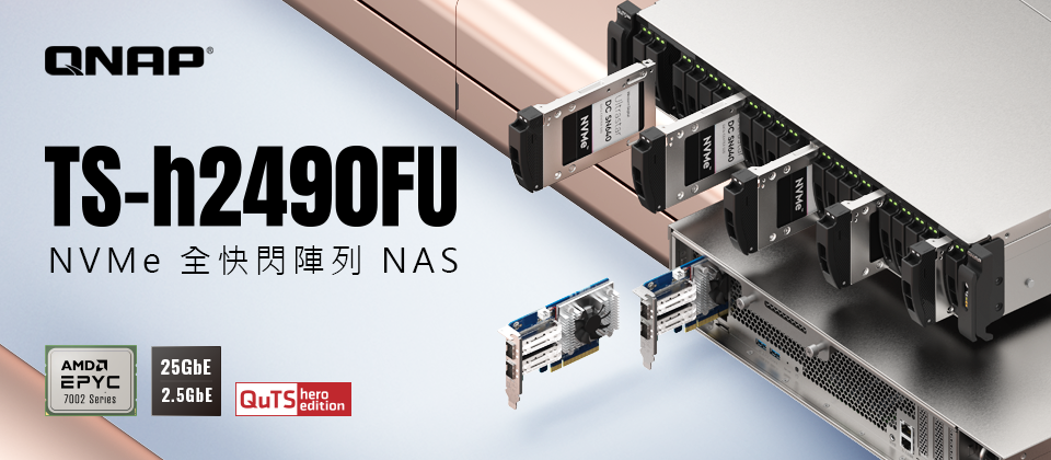 在市面上眾多專為大量資料環境設計的解決方案中,由QNAP推出的TS-h2490FU 24-bay U.2 NVMe 全快閃企業級儲存設備,是少數擁有高效能、高穩定性、低延遲等特色之外,產品售價亦相當合理,加上線上或電話技術支援,堪稱是企業打造新世代資料中心的首選。不管是將其用於大量VM虛擬化部署、萬人存取檔案主機、還是大數據AI運算,TS-h2490FU均能輕鬆對應處理。