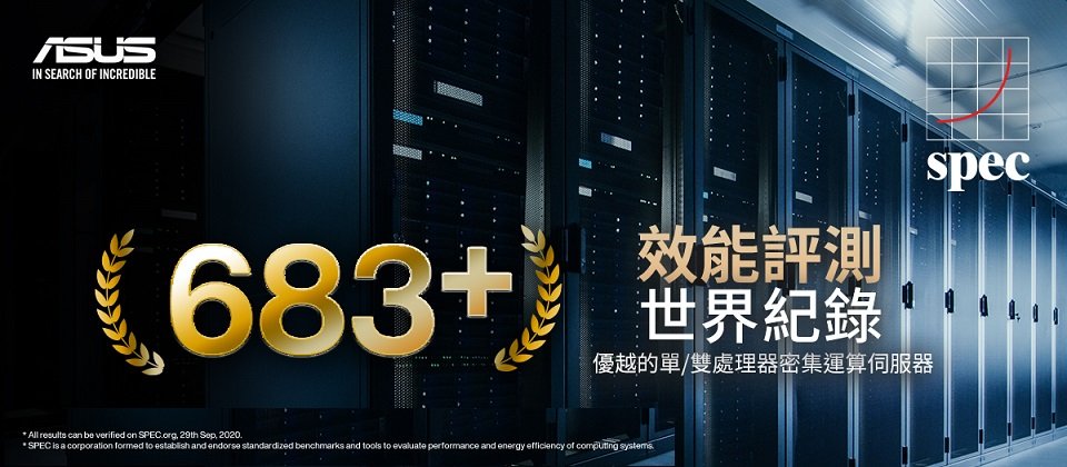 華碩伺服器榮獲國際權威指標的評測機構—SPEC(Standard Performance Evaluation Corporation)認證,在SPEC CPU® 2017基準測試的1P與2P處理器中,勇奪683項效能第一,居全球之冠。華碩旗下擁有最多機種供企業彈性選擇,以靈活的擴充性,滿足資料分析、AI及高效能運算需求,穩居全球領導品牌,為企業用戶打造絕佳運算方案。
