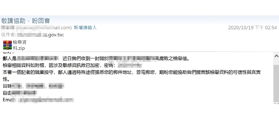 試圖透過電子郵件嘗試入侵企業單位內部,以利進行後續的竊資、部署勒索軟體等目的。這類攻擊,多半直接寄送可利用 Office 漏洞的惡意文件,並以疫情相關主題誘騙收信人開啟,試圖藉此提高攻擊成功機率。