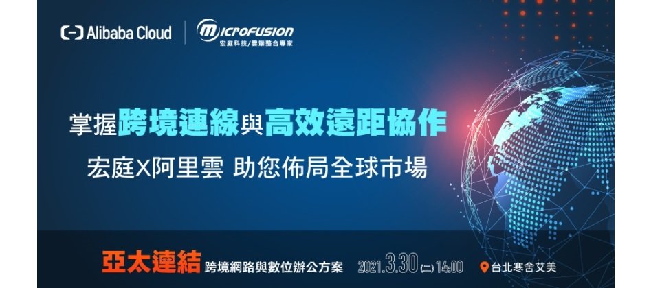 在疫情肆虐下,全球市場與供應鏈大洗牌,企業也紛紛改變既有營運模式,部署大規模安全遠端協作,此時正是台灣企業進攻全球市場的大好時機!宏庭科技特別聯手阿里雲原廠,於 3/30 在台北寒舍艾美酒店舉辦「跨境網路與高效雲端協作研討會」,幫助企業抓緊機會佈局亞太,擴張全球版圖!
