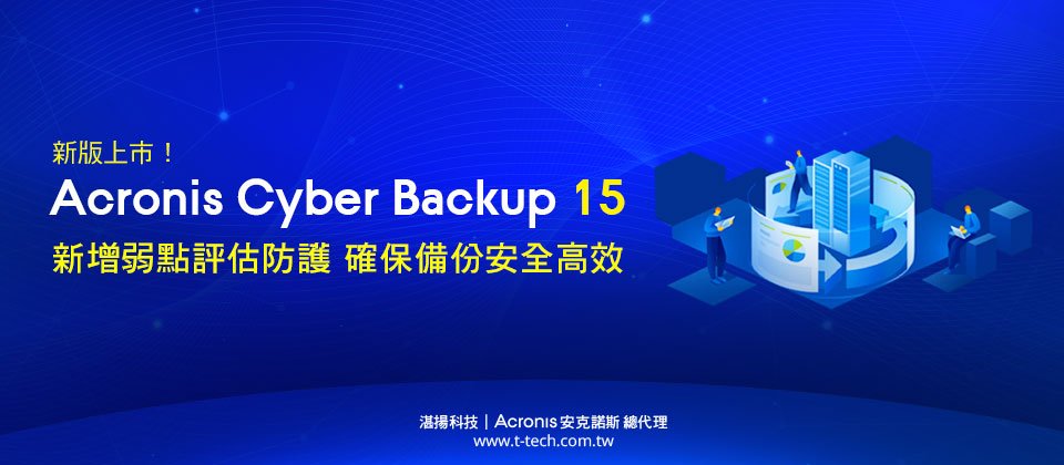 慶祝安克諾斯Acronis Cyber Backup 15新版上市,總代理湛揚科技推出【伺伴工備】活動,即日起,只要購買標準版伺服器備份授權,就免費贈送您5套工作站備份授權(市價23,400元),購買進階伺服器備份授權,就免費贈送您10套工作站備份授權(市價46,800元),活動到今年6/25止,限時限量,敬請把握優惠時機,保護伺服器也保護重要個人工作站電腦資料,湛揚科技與您一起【伺伴工備】。如想瞭解更多新版安克諾斯Acronis Cyber Backup 15產品資訊或促銷方案,請洽總代理湛揚科技02-2735-3512或上湛揚科技官網 https://www.t-tech.com.tw/ 。
