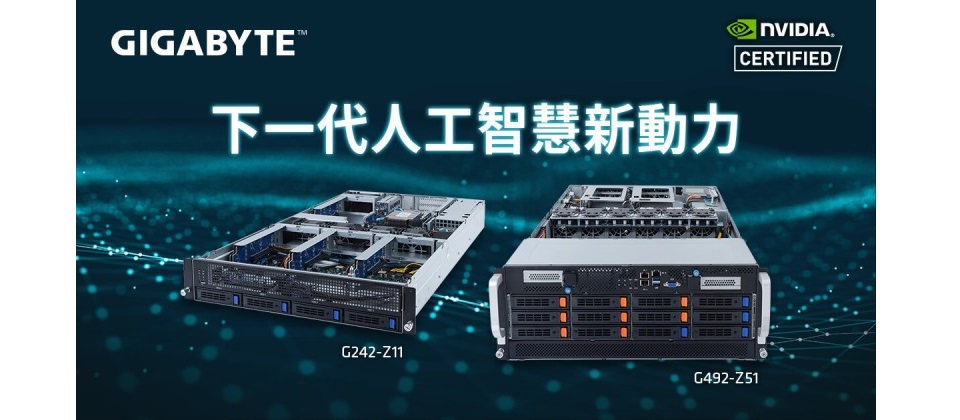 技嘉豐富的G系列伺服器產品線,專為支援更高密度的運算加速卡或繪圖卡而設計,涵蓋不同層級的使用需求,譬如可搭載8張雙插槽規格GPU並支援NVIDIA NVLink®互連技術的G492-Z51,就是一部機架式超級電腦,G492-Z51同時也取得NVIDIA認證提供搭配NVIDIA產品時的產品最佳效能與使用者體驗;G492-Z51支援兩顆新一代AMD EPYC 7003系列處理器,32組DDR4記憶體插槽以及12組NVMe / SATA / SAS硬碟槽。另一款G242-Z11 伺服器,同樣也已取得NVIDIA認證,支援單顆AMD EPYC 7003系列處理器,可容納多達4張具有PCIe 4.0傳輸速度的GPU卡,以實現邊緣運算的即時處理需求。