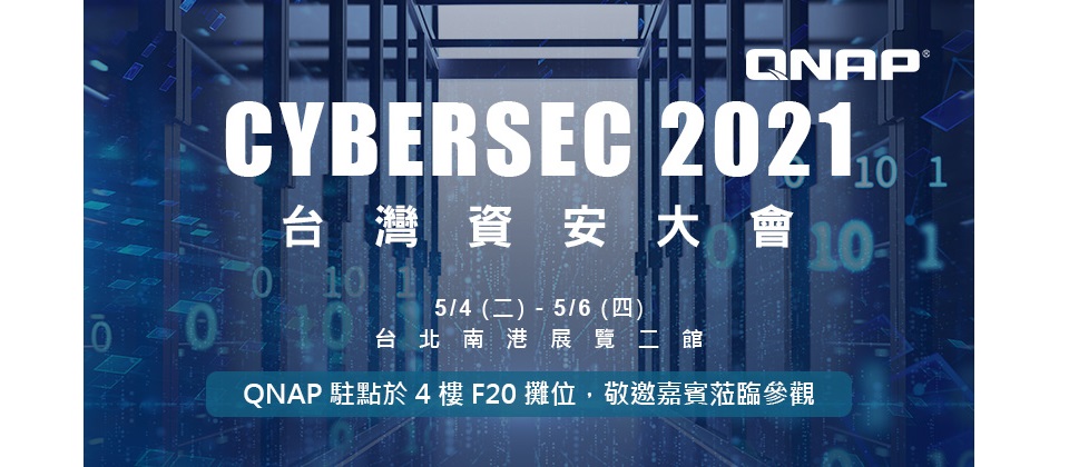 CYBERSEC 2021 臺灣資安大會於 2021 年 5 月 4 日至 6 日在台北南港展覽館 2 館舉行,QNAP 將在 F20 攤位參與此一年度資安盛會,誠摯邀請所有觀展嘉賓、媒體先進及參展廠商蒞臨 QNAP 攤位,見證 QNAP 進軍資安領域之作,以及 QNAP 對資安毫不妥協的品牌價值。