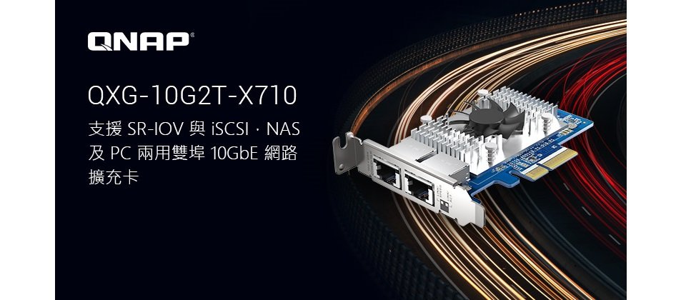 威聯通®科技 (QNAP® Systems, Inc.) 推出新款 10GbE 雙埠網路擴充卡 QXG-10G2T-X710,採用 Intel® Ethernet Controller X710,支援 PCIe Gen 3 (相容 PCIe Gen 2),可安裝在具備 PCIe 插槽的 QNAP NAS 或 Windows® 或 Linux® 個人電腦中。