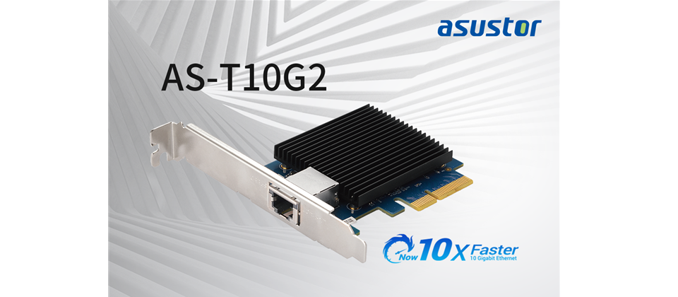 ASUSTOR Inc. 推出新一代 10G Base-T 網路卡 - AS-T10G2,即刻突破傳統千兆乙太網路傳輸瓶頸,並將網路傳輸速度有效升級至10G。AS-T10G2 使用新一代 Marvell AQC 107 網路晶片,搭配 AS7116RDX 在 Windows 傳輸 (10GB 檔案, 10GbE x1),可達到讀寫 1127 / 1124 (MB/sec) 的優異傳輸效能,同時也支援IP, TCP, UDP 校驗和卸載以降低 CPU 使用率,不論是中小企業或家庭用戶,強大的效能及穩定的傳輸,都能帶來高效的網速提升。