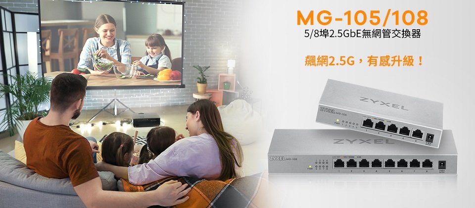 更多關於MG-105/MG-108 5/8 埠2.5G無網管交換器資訊,請參考:https://www.zyxel.com/tw/zh/products_services/5-8-Port-2-5GbE-Unmanaged-Switch-MG-105-MG-108/