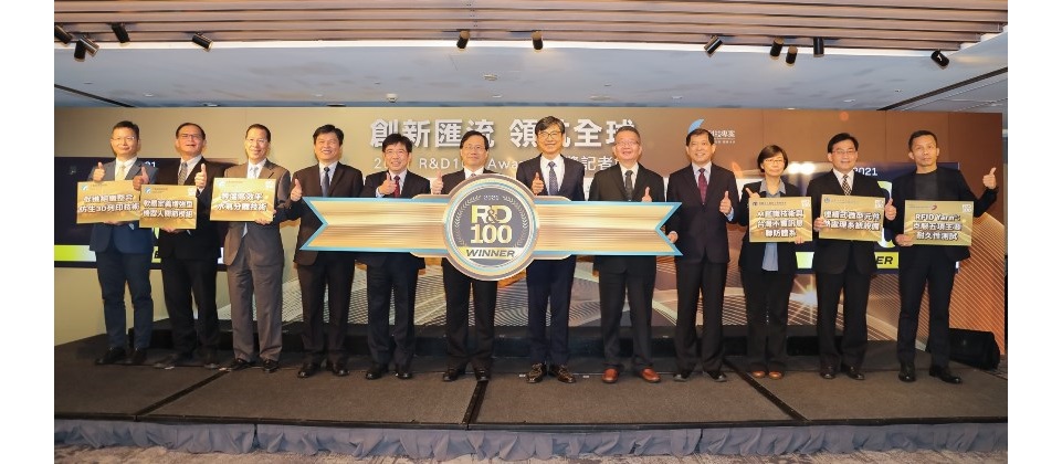經濟部技術處昨(26)日舉辦全球百大科技研發獎(R&D 100 Awards)獲獎記者會,由經濟部次長林全能(左6)、經濟部技術處處長邱求慧(左7)偕同資策會副執行長楊仁達(左4)、資策會服創所所長林玉凡(右3)及各獲獎法人代表合影。