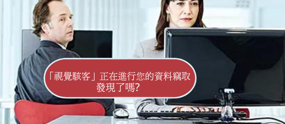 「網路駭客」不陌生,經常神秘出沒於虛擬網路世界中,他們透過電腦或是其他上網設備,專找系統程式發生的漏洞,趁機入侵系統中進行重要機敏資料的竊取、銷毀或是進一步拿來威脅企業勒索贖金。然而,「視覺駭客」出沒樣態正好相反,他們是真實出現在我們身旁,守株待兔等待我們打開電腦螢幕的那一刻,不著痕跡偷窺我們螢幕上所呈現的資料,進行視覺上的資料竊取。你發現了嗎?