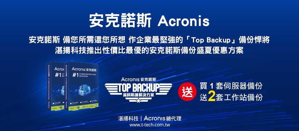 有鑑於加密勒索的攻擊與日劇增,不僅讓企業遭受資料和金錢的損失,更因資料遺失、商機洩露、隱私曝光等帶來災難性的後果,盛夏初至湛揚科技就立即推出「備份悍將」優惠方案,讓您保護伺服器,同時也保護重要工作站,只要購買1套伺服器備份解決方案,就送您2套工作站備份解決方案,幫您捍衛公司重要伺服器及保護高階主管的電腦不受加密勒索的威脅,作為企業最堅強的「Top Backup」備份悍將!如需更多安克諾斯相關產品資訊或測試下載,請洽總代理湛揚科技02-25151585或上湛揚科技官網 https://www.t-tech.com.tw/。