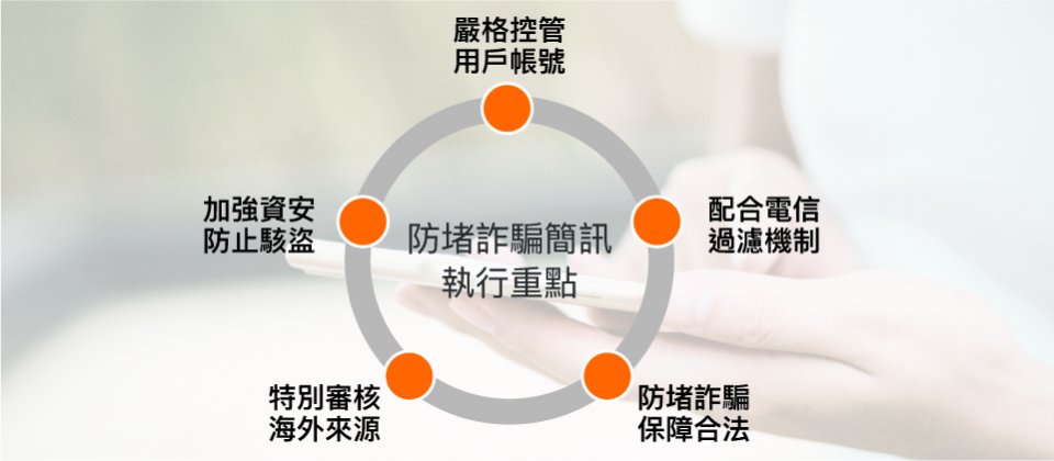 互動資通董事長郭承翔說,今年積極配合主管機關與電信系統,從嚴格控管用戶帳號、配合電信過濾機制、防堵詐騙保障合法、特別審核海外來源及加強資安防止駭盜五大執行重點下手,可疑停用門號數大幅下降,成功攔阻率相較高峰期有效減少85%。同時由於去年已進行門號申請實名制與雙證件身分核實,有效預防人頭帳戶或代收簡訊認證碼的情事發生。