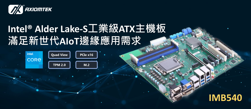 全球知名領導廠商 - 艾訊股份有限公司 (Axiomtek Co., Ltd.) 持續致力於研發與製造一系列創新、高效能且可靠的工業電腦產品,全新發表搭載LGA1700插槽第12代Intel® Core™ i9/i7/i5/i3中央處理器 (Alder Lake-S平台) 的極致效能工業級ATX主機板IMB540。擁有獨立四顯與雙GPU擴充功能,提供智慧工作負載優化與高擴充繪圖,滿足新世代AIoT邊緣應用領域需求。