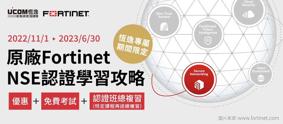 年底Fortinet原廠與恆逸獨家課程大優惠!凡報名2022/11後開課之班級,除了享九五折優惠價,再贈送一次認證考試(價值USD150-400),與3hr線上總複習,總價值超過萬元以上,名額有限儘請把握!
