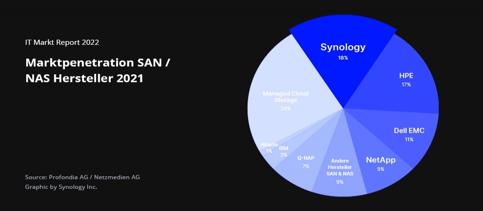 Synology 群暉科技在瑞士最大專業 IT 通路媒體 IT-Markt 進行的《IT-Markt-Report 2022 》調查中,於儲存市場佔有率為瑞士第一。