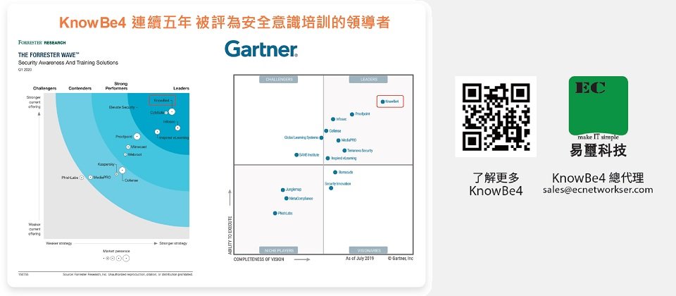 在市面上眾多資安意識改善方案中,又以整合安全意識培訓和模擬網路釣魚平台的KnowBe4最受歡迎,已連續三屆獲得Inc. 500獎項、連續五年被Gartner評為安全意識培訓領導者,至今已累積多達39,000家用戶,能讓企業資安風險降低15倍。