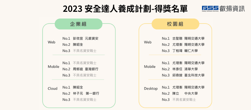 最後,恭喜本屆「安全達人養成計劃暨資安戰士挑戰賽」的前三名得主們,叡揚資訊更特別為企業主第一名提供額外獎勵,贈送 25 個帳號,免費使用 Secure Code Warrior 平台一個月。Secure Code Warrior 安全程式學習平台,提供豐富學習模組、支援 60 多種軟體開發語言和框架,搭配真實程式碼與互動式學習機制,讓開發人員可快速理解與避免常見的安全漏洞和弱點,不同於傳統「填鴨式」的培訓方法,提供兼具廣度和深度及實戰性的學習資源。叡揚資訊在明年將持續舉辦「安全達人養成計劃」,並致力於提供更多的學習和交流機會給台灣的資安愛好者。相信透過這樣的計劃,將不斷培養出更多優秀的資安人才,為台灣資安培訓領域做出更大的貢獻。