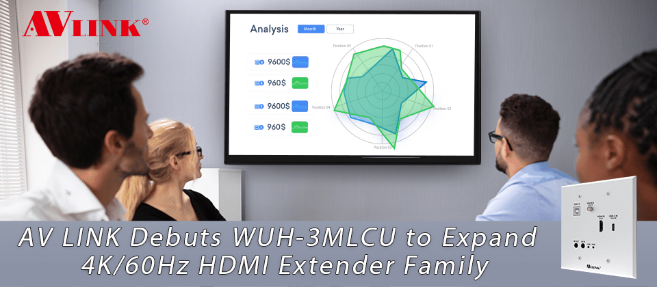 上展科技 (AV LINK) 推出新款 WUH-3MLCU 壁掛式訊號延伸器,擴大4K/60Hz HDMI 訊號延伸器的產品線。該4K/60Hz 4:4:4 HDBaseT™ 3.0 HDMI 和USB-C 訊號延伸器可通過WUH-3MLCU(發射器)在USB-C 和HDMI 影像來源之間切換,並將影像串流傳輸到HDBaseT™ 設備 (接收器)。