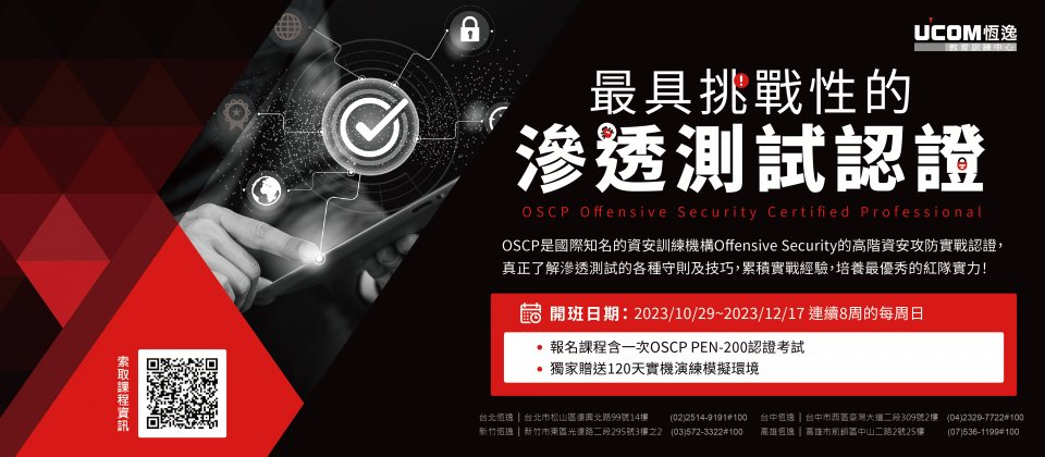 1.報名本課程包含一次OSCP PEN-200認證考試、