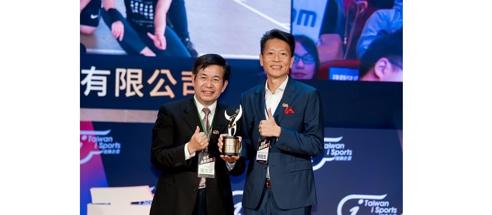 教育部潘文忠部長(左)頒發運動企業認證獎座予博弘雲端執行長何冠生(右)