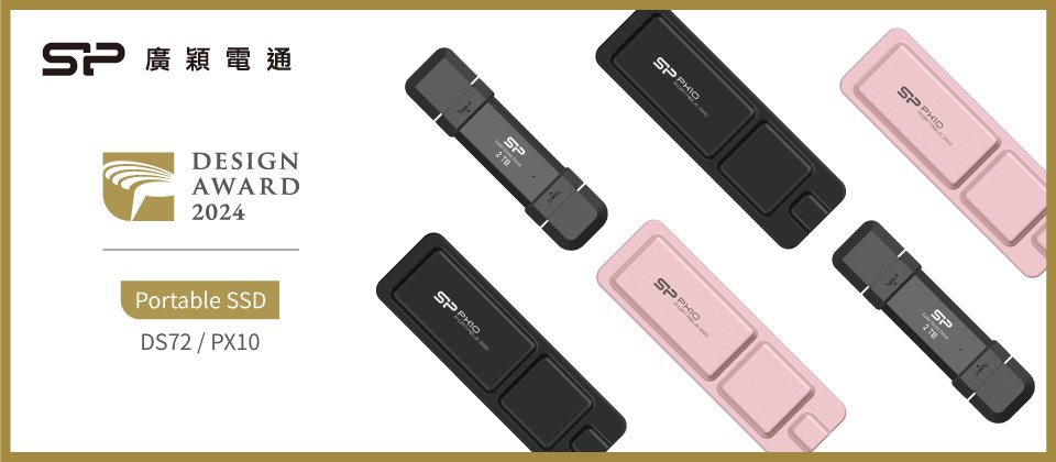 全球記憶體儲存領導品牌廣穎電通(Silicon Power,簡稱SP或廣穎)的產品設計力再獲肯定,旗下兩款高速行動固態硬碟PX10及DS72榮獲2024金點設計獎。PX10及DS72搭載USB 3.2 Gen 2高速傳輸介面,擁有每秒破千的讀取速度及輕薄小巧的外觀,為數位影像創作者和行動工作者提供便利的儲存解決方案。