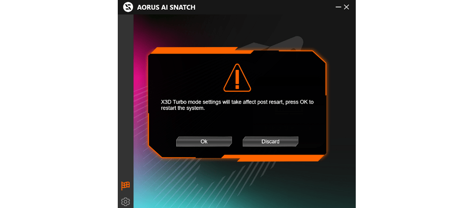 點選AORUS AI SNATCH左下角的旗幟圖示,以啟用X3D Turbo模式