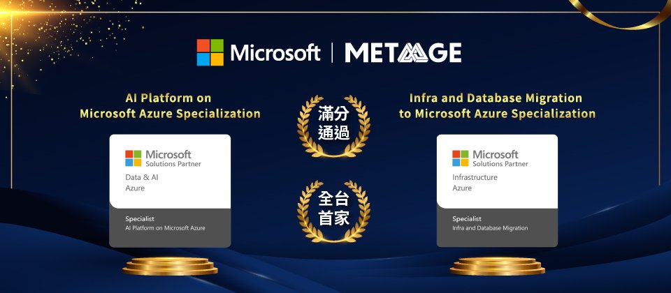 IT 智能化最佳夥伴 MetaAge 邁達特(6112)宣布率先取得微軟「AI Platform on Microsoft Azure」、「Infra and Database Migration to Microsoft Azure」Specialization 資格雙認證,成為全台首家同時具備此雙重認證的微軟 CSP Indirect Provider,奠定其在台灣 Azure AI 應用生態圈中的核心地位。
