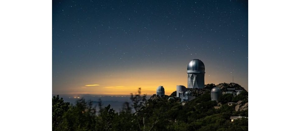 夜間在美國基特峰國家天文台所見的梅奧爾 4 公尺望遠鏡,將是暗能量光譜儀的所在地