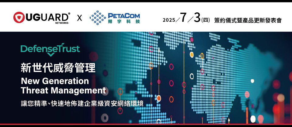 為強化台灣地區通路合作與資安佈建服務,網路資安廠商 UGUARD NETWORKS 與台灣資安代理商朔宇科技(PETACOM)即將於 2025 年 7 月 3 日舉行合作簽約儀式與產品更新發表會,雙方將攜手擴展企業級資安解決方案在台佈署,為更多企業服務。