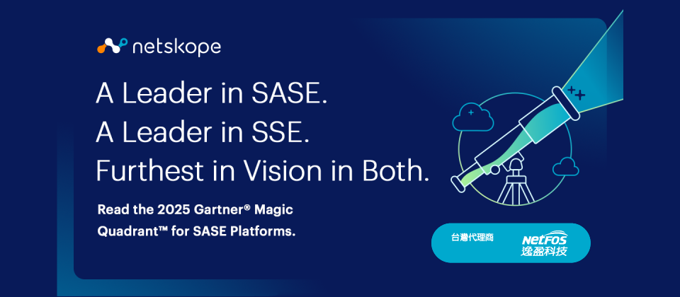 全球雲端資安領導品牌 Netskope 於 2025 年再度入列 Gartner®《Magic Quadrant™ for Security Service Edge(SSE)》領導象限,並連續第二年在《Magic Quadrant™ for Secure Access Service Edge(SASE)》報告中獲評為領導者,展現其整合安全與網路的技術實力與策略視野。Netskope 台灣代理逸盈科技已全面導入 Netskope One 平台,攜手台灣企業落實零信任架構,因應雲端轉型與日益複雜的資安挑戰。