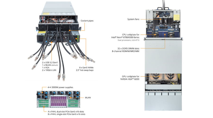技鋼科技近日正式發表兩款支援Intel® Xeon® 6處理器以及NVIDIA HGX B200 平台的高效能伺服器 G4L4-AD1-LAX5 與G4L4-SD1-LAX5。設計導入 CPU 與 GPU 的直接液體冷卻 (Direct Liquid Cooling, DLC) 解決方案,結合漏液檢測機制,同時兼顧效能輸出與資料中心的能源效率。這兩款伺服器專為 AI 訓練、推理及 HPC 高密度工作負載打造,助力企業邁向新世代運算需求。