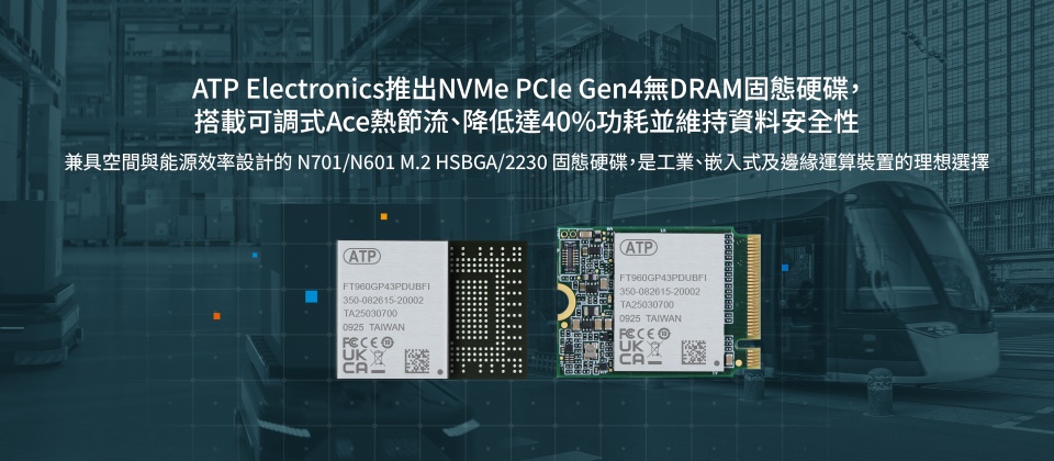 全球專業儲存與記憶體解決方案領導品牌ATP Electronics推出新系列NVMe PCIe Gen 4小尺寸固態硬碟(SSD),搭載ATP自行開發技術,突破熱節流限制,節省高達40%的功耗,並透過強大的安全功能來保護儲存資料。新系列N701/N601固態硬碟的創新技術,結合了ATP研發團隊的韌體工程能力與豐富的產業經驗,深入開發各種應用場景和挑戰,進而開發了記憶體產品獨特且具差異化的技術與設定。