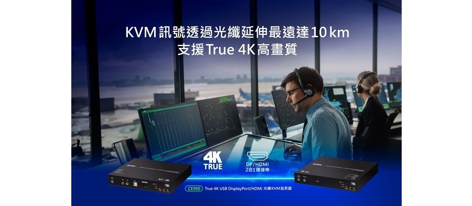 全球KVM與AV/IT連接與管理方案領導品牌–宏正自動科技(ATEN International,6277),隆重推出全新光纖 KVM 訊號延長器:CE980 與 CE990 USB True 4K DisplayPort/HDMI 光纖 KVM 訊號延長器。這是 ATEN 第一款支援 True 4K 的光纖 KVM 延長器,傳輸距離最遠可達300公尺(CE980),甚至達10公里(CE990)。這兩款新品,專為執行關鍵任務的控制環境而設計,特別適合交通、製造、公共事業等應用。此外,支援 HDR10,可還原精確的色彩,擁有卓越的影像品質。