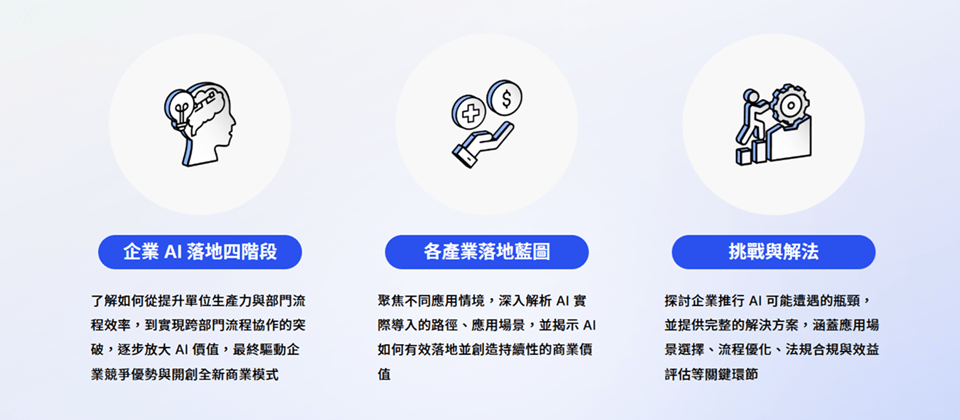 適合對象:企業與組織的決策者及高階主管、資訊長/資訊主管、IT 經理,以及所有關注企業 AI 發展並計畫導入相關解決方案的人士