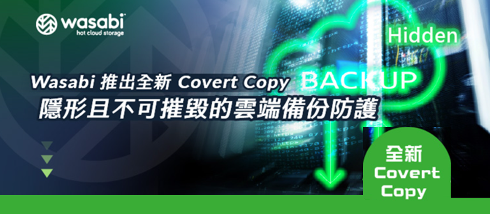 Wasabi 推出了 Covert Copy,一項專利申請中(patent-pending)的資料保護技術,可在其 Hot Cloud Storage 中建立「隱藏 (hidden) 且不可更改 (immutable)」的資料副本。