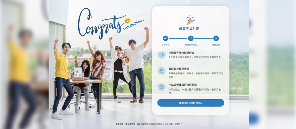 日商唄粉智能科技指出,市場不缺數據,缺的是能看懂「情緒」與「信任」的能力;因此推出 ShellFans,以「社群資產保險箱」作為第一階段核心,從創作者的內容與互動資料留存開始,打造可被分析、可被提煉的高品質資料基礎,為下一階段 AI 洞察能力鋪路。