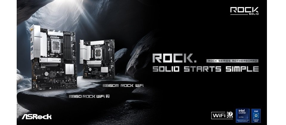 Rock 系列是華擎全新產品線,主打穩定效能與貼近市場的實用配置,承襲「ASRock」品牌理念,Rock系列致力於打造性能、功能與價格之間達到最佳平衡點的產品。例如Rock全系列標配WiFi 與2.5GbE的網路規格,支援PCIe 5.0高速傳輸標準,配置一體式I/O 檔板,讓 DIY 組裝更加便利,為工作、學習與遊戲打造穩固可靠的系統基礎。其中ATX尺寸的B850 Rock WiFi 7與B860 Rock WiFi 7更進階支援802.11be WiFi 7,提供更快速且低延遲的連線體驗。