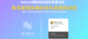 雲端遷移實力再登頂!Netron 網創資訊榮獲微軟「基礎架構與資料庫遷移技術專精認證」