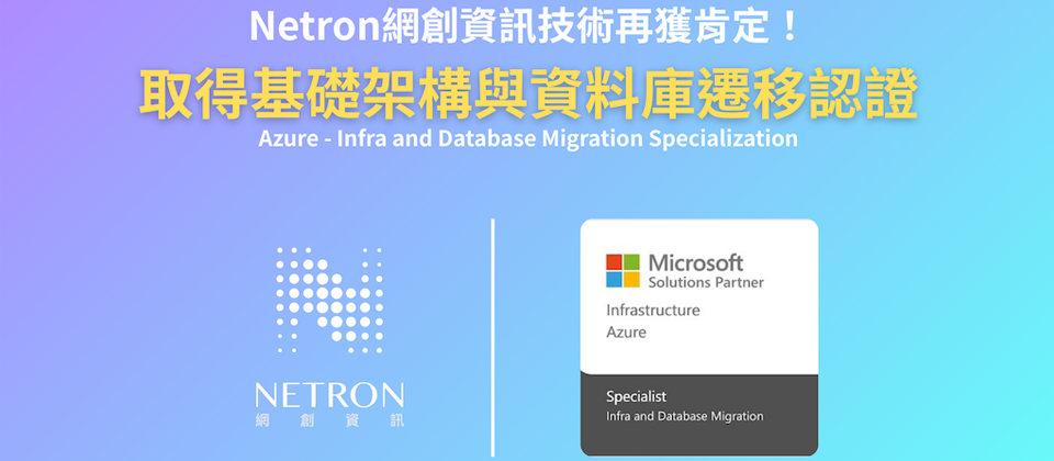 Netron網創資訊正式取得微軟 Infra and Database Migration to Microsoft Azure Specialization「基礎架構與資料庫遷移技術專精認證」。