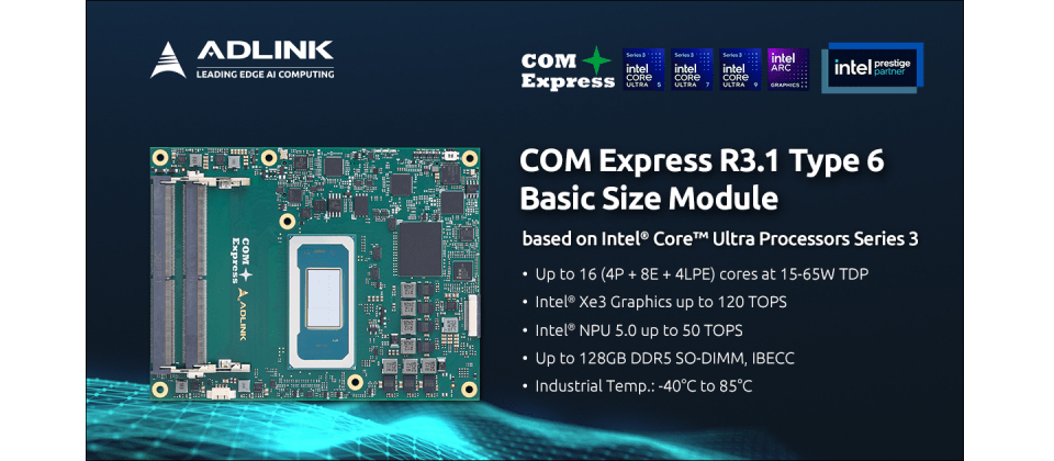 凌華科技的 Express-PTL 與 COM-HPC-mPTL 開發套件(含參考載板與完整 I/O 支援)將於 2026 年第二季提供,以協助客戶加速原型開發、縮短時程並簡化系統整合流程。