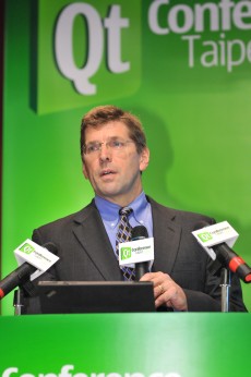 | 諾基亞Qt & MeeGo 生態系統業務發展總監Chuck Piercey說明Qt開發的產品之所以遍及全球並橫跨各產業的優勢 |