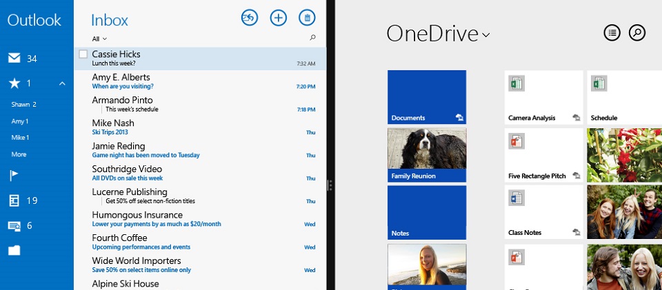 根據微軟最近一項網路調查結果顯示[2],至少77% 熟悉雲端服務的消費者依然將資料儲存在某個沒有其他備份的裝置上,而有六成九的使用者認為資料遺失比裝置損壞要來得更嚴重。使用OneDrive服務後,使用者不再需要擔心裝置若損失或損壞,資料會連帶著消失。 OneDrive服務提供7GB免費儲存空間,相當於七千張相片的儲存容量,如此一來,使用者就可確保所有的相片、影片和文件檔案都能安全存放且方便隨時取用。