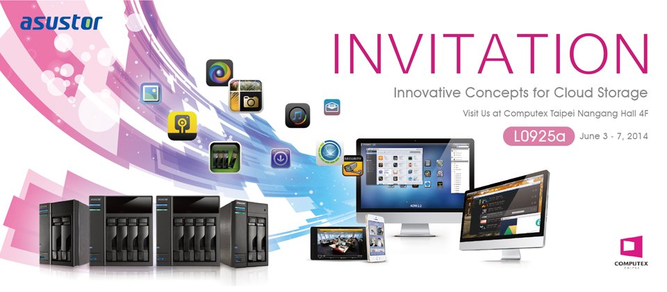 創新領導網路儲存設備 (NAS) 廠商華芸科技 (ASUSTOR Inc.) 宣布將於台北 Computex 2014 展出。展會中除了展示一系列具 Intel® Atom™ 雙核心處理器平台桌上型及機架式網路儲存伺服器 6 /3 /2 系列外,同時介紹有採用 Intel®Haswell Xeon 處理器/ Core i 處理器最新款的企業級機架型機種 7 系列 (AS7009RD/AS7009RDX/AS7012RD/AS7012RDX),為中小商務用戶所打造的經濟型機架機種 AS-204RS,以及兩款桌上型機種採用 Intel®i3 處理器的 AS7008T/AS7010T。在展會中亦將實機示範最符合人性操作介面的作業系統 ADM 2.2,其中包含 NAS 的基本核心功能的升級應用、整合有 ADM 網頁登入介面、多媒體影音播放、網頁瀏覽、安全監看等適合家庭用戶的HDMI 擴充應用 ASUSTOR Portal、由華芸自行研發最新的應用程式以及平板裝置適用的應用程式等等。歡迎參訪者屆時蒞臨華芸展位逐一體驗最火的雲端儲存應用。