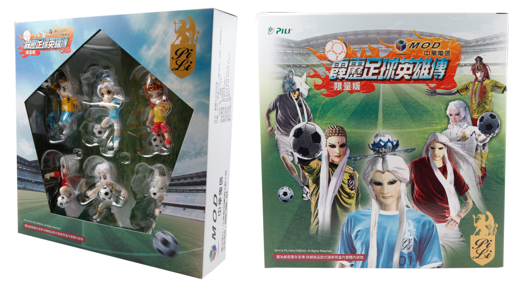 高畫質體育賽事首選品牌中華電信MOD,不僅獨家創新引進2014巴西世足賽1+5多視角球賽轉播服務,更秉持著推動本土文創產業升級的精神,與霹靂布袋戲跨界合作,邀請霹靂布袋戲素還真、一頁書等知名角色拍攝【MOD霹靂足球英雄傳】廣告,同時推出限時限量霹靂足球公仔,以數位科技連結文化藝術及創意動能,讓全球性的世足熱潮增添台灣本土文化圖騰的光華意象。