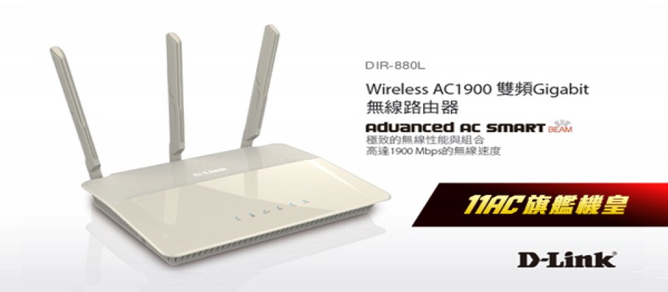 D-Link繼2013年初領航802.11ac市場以來,根據市調機構IDC 2013/Q4評比,全台802.11ac設備佔比已高達75%,鰲佔市場龍頭地位。D-Link雖非市場首家推出AC1900系列產品之品牌,但以市場佔有率第一名為基礎蒐羅眾多消費者實際使用需求後,D-Link DIR-880L具備更多競品所欠缺的實用特色;包括讓無線涵蓋範圍更廣的AC SmartBeam 智慧天線技術、內建硬體NAT加速器發揮AC1900極致效能、QRS Mobile app簡易設定與智慧拖拉操作介面、可依據不同使用者無線型態自動切換最佳無線狀態的Advanced QoS、可遠端掌握居家網路狀態的mydlink終身免費雲服務平台及免設定DDNS/免開Port最簡易上手的雲端存取與分享的mydlink SharePort。D-Link 11AC旗艦機皇AC1900 DIR-880L雲路由將引領您從數位家庭走向智慧聯網家庭,更將為您開啟一個更加極速順暢且便利多元的網路應用新時代。更多產品資訊,請逕上D-Link官網查詢 www.dlink.com.tw。