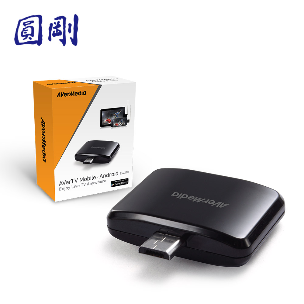 AVerTV Mobile-Android EW310,是專為Android行動裝置設計的DVB-T數位電視棒,體積精巧僅有14.5公克,便於攜帶,無論是午休時間、等車等餐廳的排隊空閒都可使用,是忙碌現代人打發時間的良伴。人性化的軟體設計如:全頻道自動掃描、雙語支援、電子節目表單(EPG)及錄影功能等,使用者可直接將喜愛的節目錄製下來,讓智慧型手機及平板電腦搖身一變成為個人專屬電視!