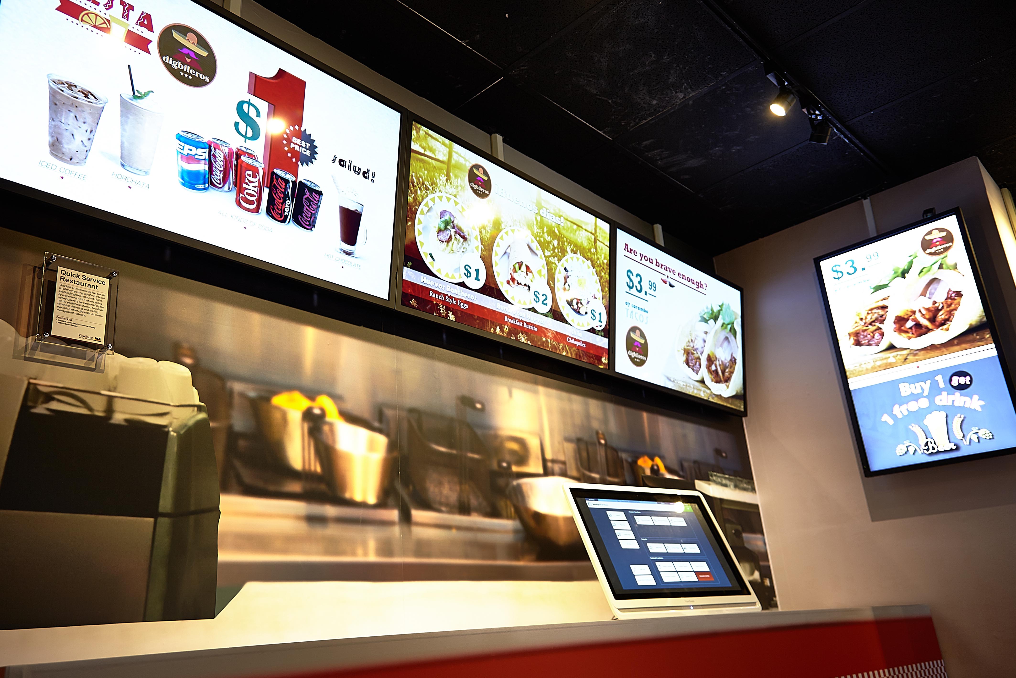視訊科技領導品牌 ViewSonic看準連鎖餐飲及速食業逐漸採用數位電子菜單的商機,推出全方位數位電子看板解決方案,不論是在百貨公司、購物商場、大型賣場、機場、餐廳或是娛樂等公共場所,透過創意數位電子菜單的互動、多元、即時及分眾性等特性,以動態影像抓住顧客目光,擺脫傳統呆板的呈現方式,讓電子菜單成為消費者的時尚話題,同時可以讓店家更有效率的出餐以及增加翻桌率。ViewSonic 一系列的數位看板擁有絕佳的視覺表現與智慧設計,可將軟體、內容與服務做有效的整合,依使用者需求提出最完整、最適用的數位服務解決方案。