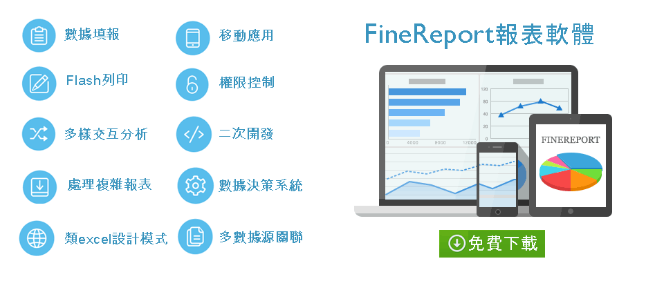 (論數據分析報表軟體9大標準:http://www.finereport.com/tw/knowledge/acquire/sjbbgjbz.html)